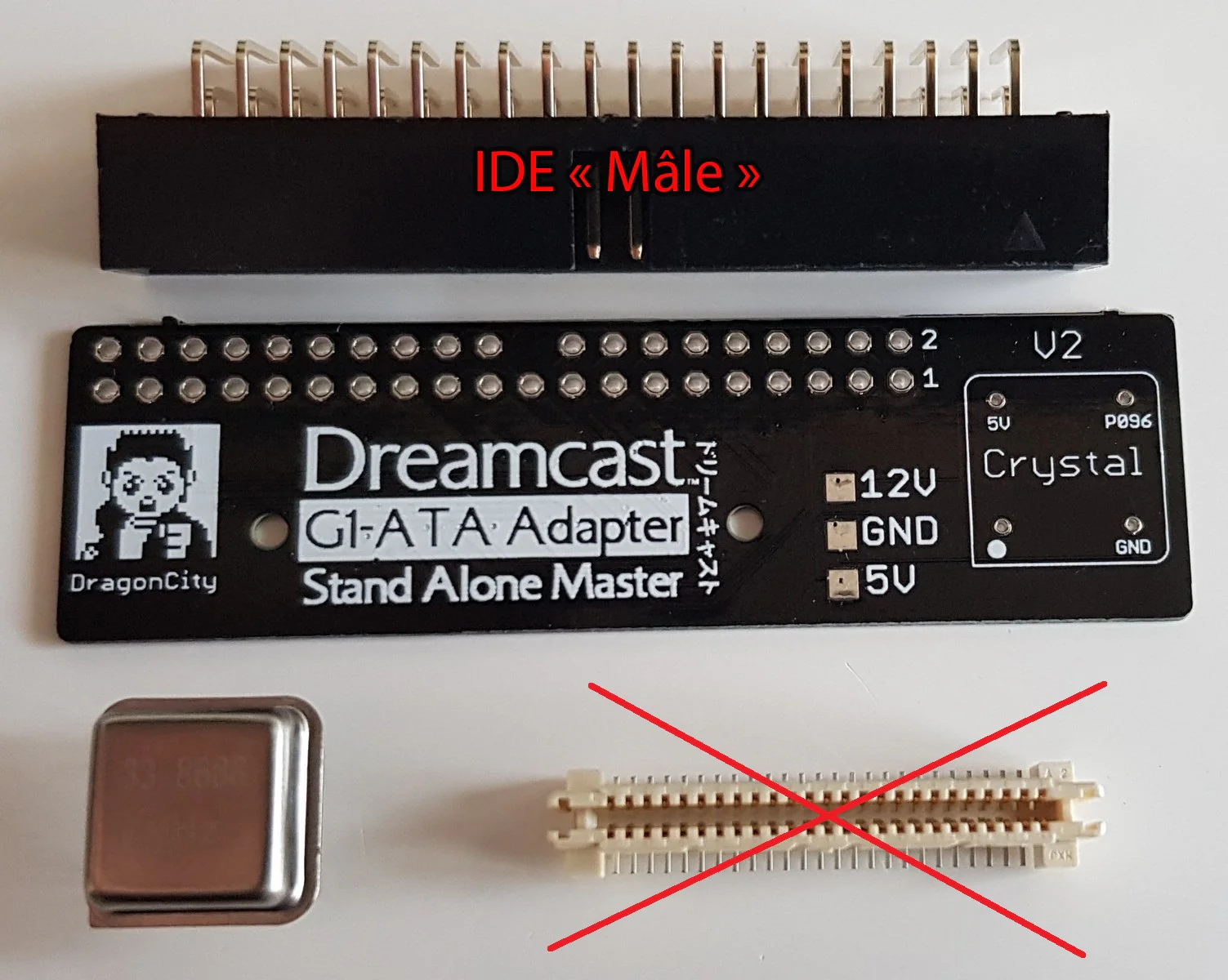 ⚠️ Les versions Dreamcast - PCB G1-ATA "V2" (connecteur GDROM non fourni !) sont à assembler, et vous devez avoir le connecteur GDROM (non fourni).